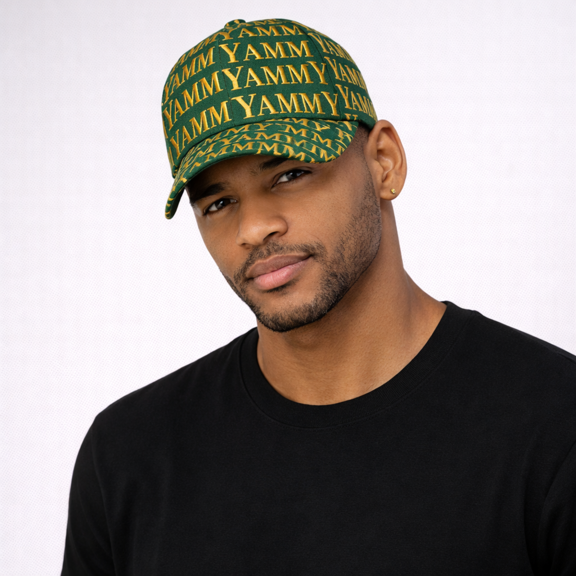 La Casquette YAMM Mech Vert & Or exprime l’audace et le prestige selon la Maison YAMM. Une pièce d’exception qui marie teintes impériales, monogramme doré et structure contemporaine, symbole d’un luxe assumé.
