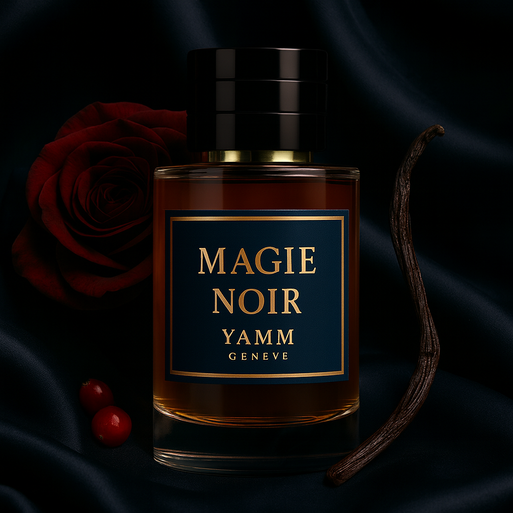 Magie Noir de YAMM Genève s’inscrit dans l’univers des parfums fruités gourmands modernes.