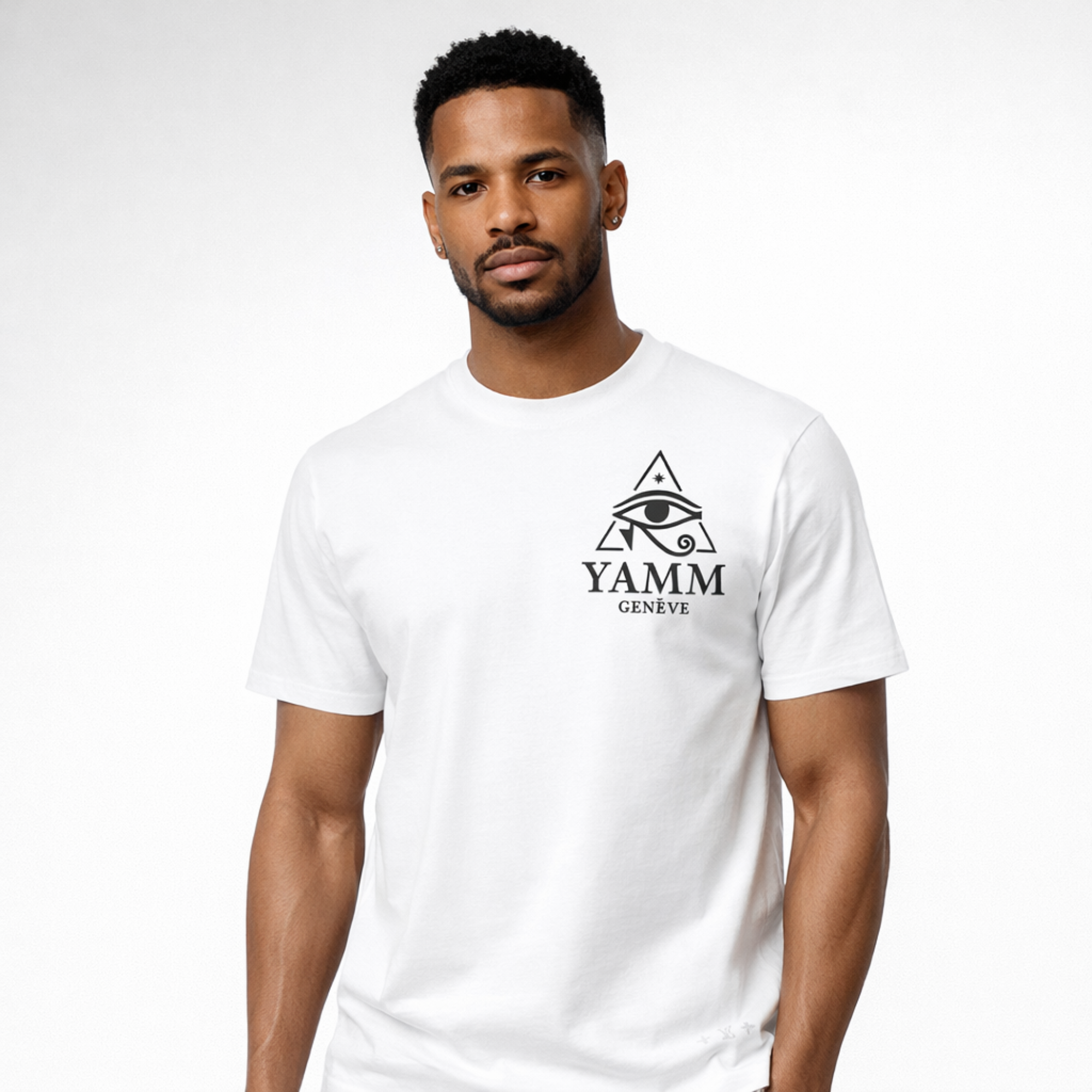 Le T-shirt Vision Blanche incarne l’essence raffinée et mystérieuse de la Maison YAMM. Sur fond blanc pur, le logo exclusif – l’œil au sein du triangle – se dresse fièrement sur la poitrine, symbole d’élégance et de puissance intemporelle. Ce t-shirt blanc haut de gamme traduit une approche subtile du luxe, où la simplicité magnifie le détail.